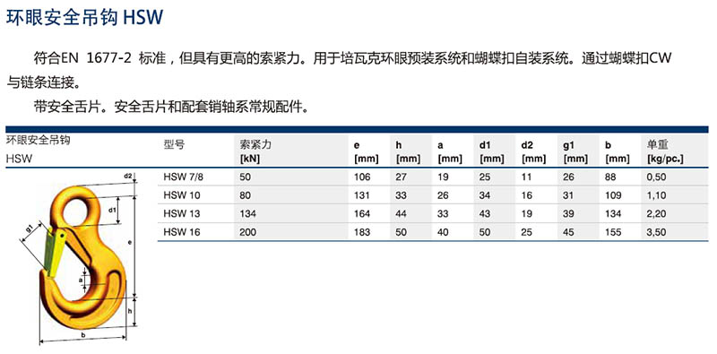 培瓦克Pewag環(huán)眼安全吊鉤HSW