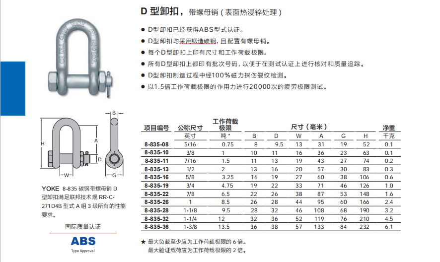 臺灣YOKE D 型卸扣( 表面熱浸鋅處理 )