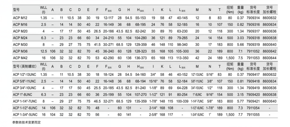 吊環(huán)參數(shù):