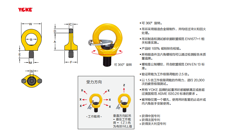 YOKE 帶止動片眼型旋轉吊環